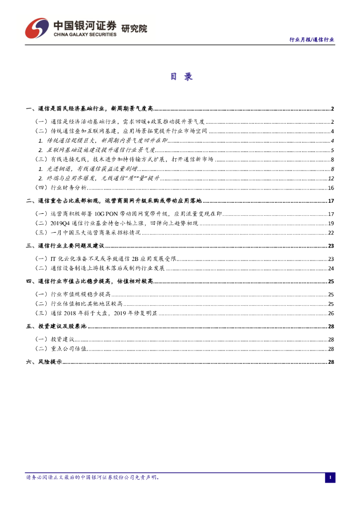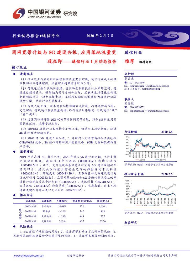 中国银河:通信行业1月动态报告:固网宽带升级与5G建设共振,应用落地流量变现在即.pdf