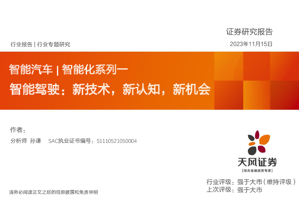 天风证券:2023智能化系列报告-智能驾驶:新技术,新任知,新机会.pdf
