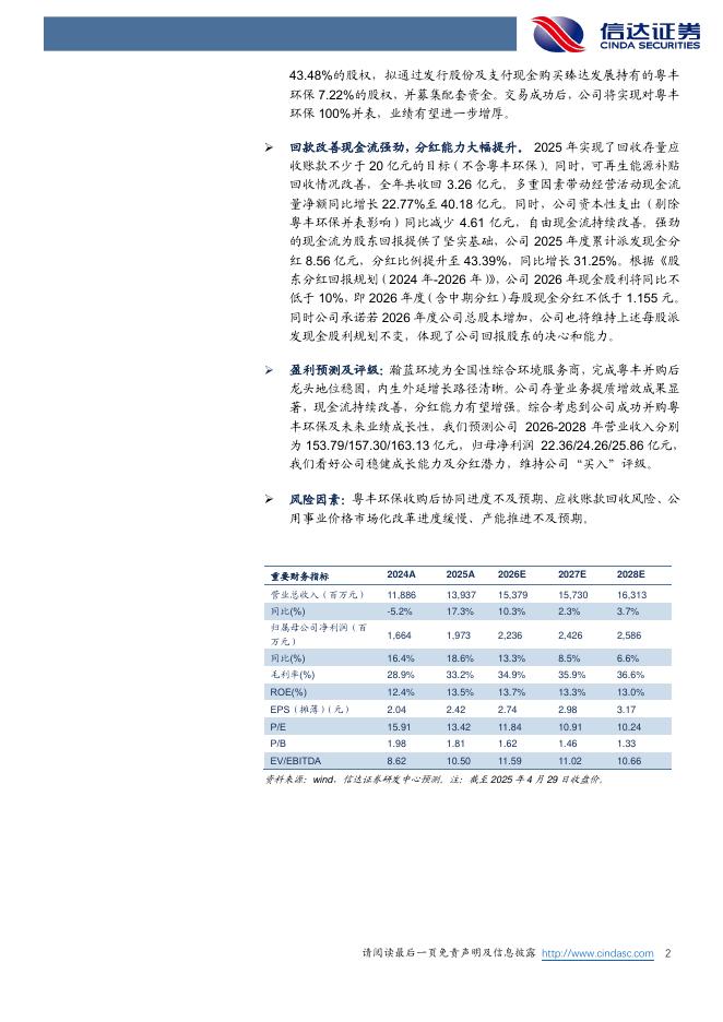 信达证券:瀚蓝环境(600323)-精益化运营驱动业绩内生增长,粤丰并表协同效益发挥增厚利润.pdf