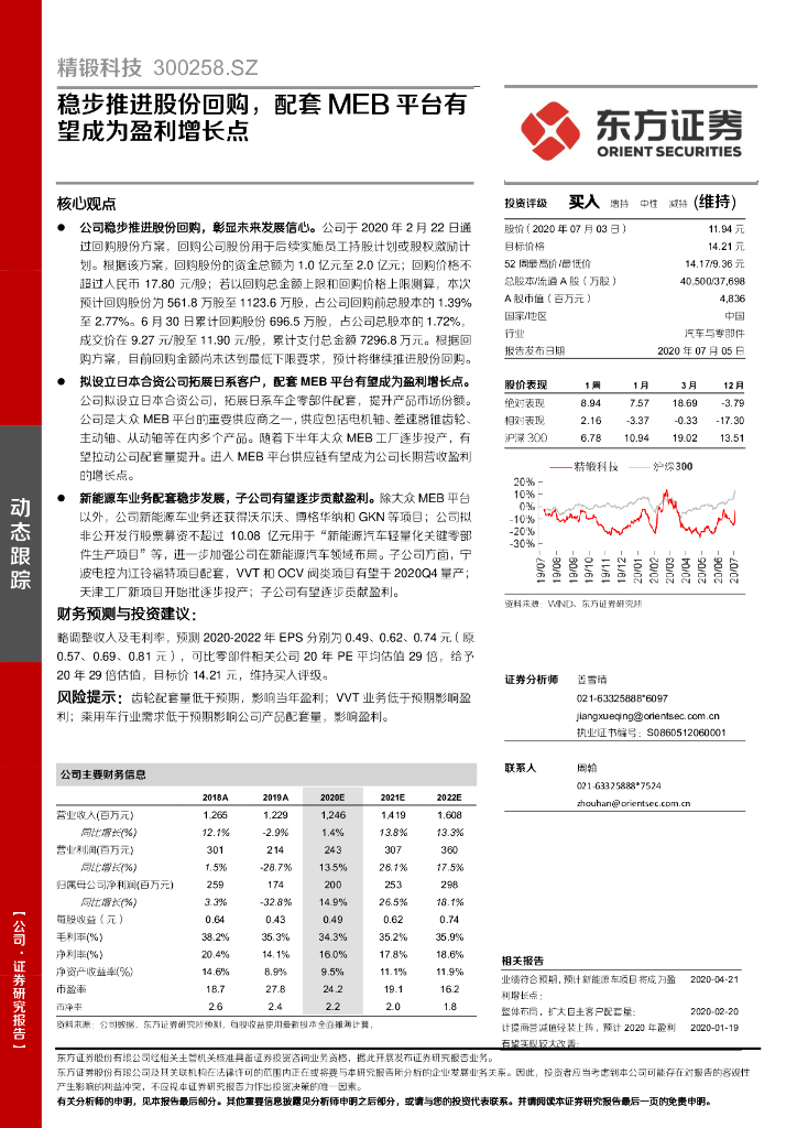 东方证券:精锻科技(300258)-稳步推进股份回购,配套MEB平台有望成为盈利增长点.pdf