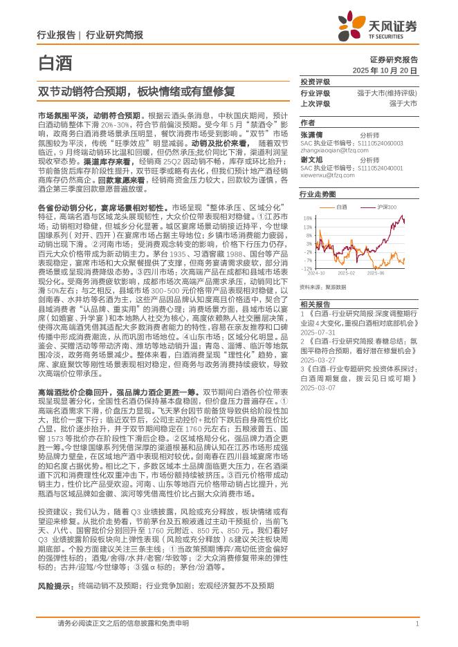 天风证券:白酒行业研究简报:双节动销符合预期,板块情绪或有望修复.pdf
