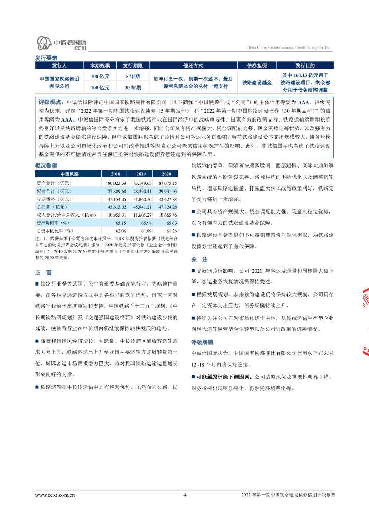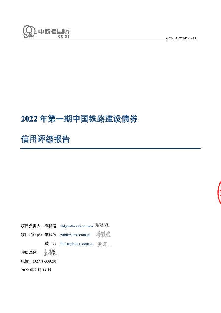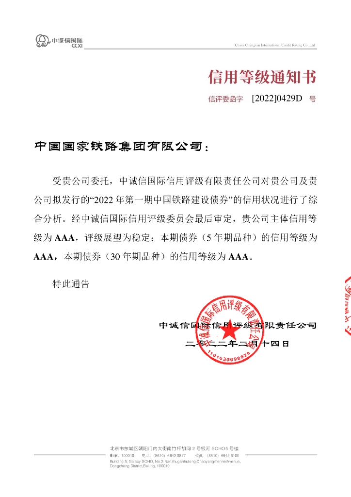 中诚信:2022年第一期中国铁路建设债券信用评级报告.pdf