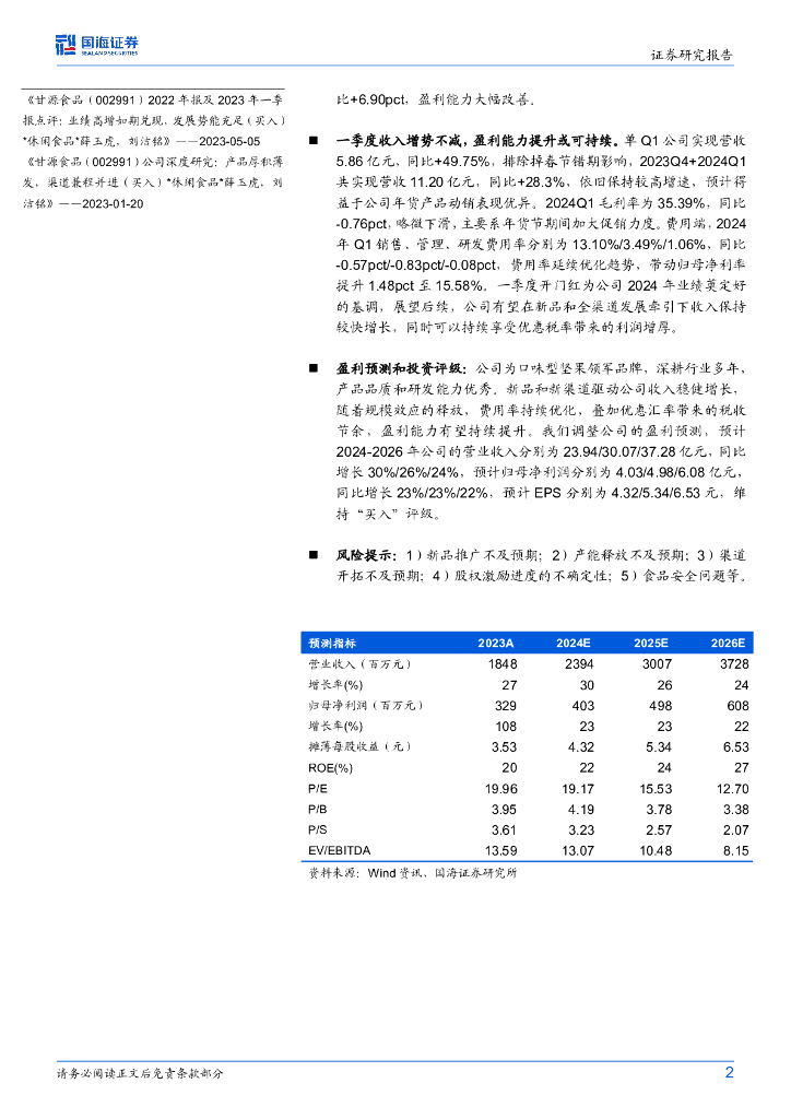 国海证券:甘源食品(002991)-2023年报和2024一季报点评:产品渠道双轮驱动,业绩增势延续.pdf