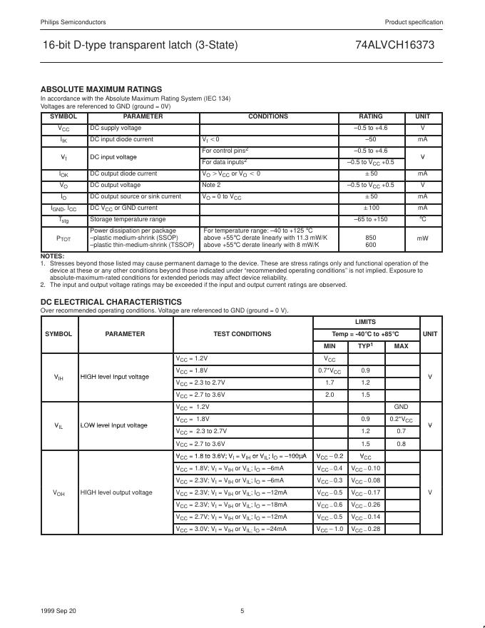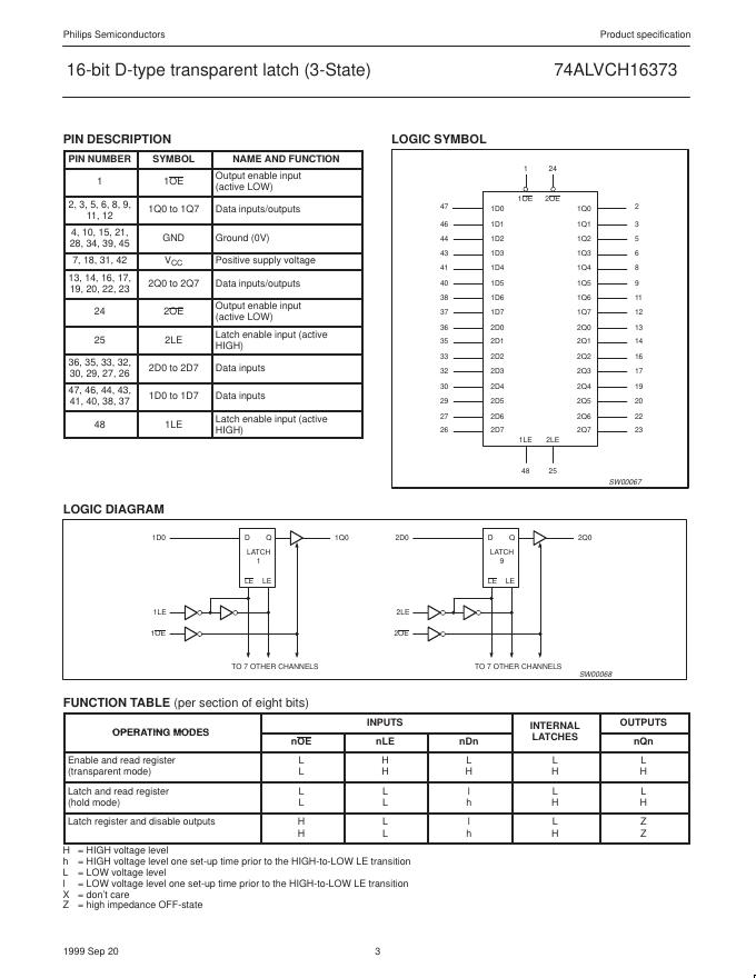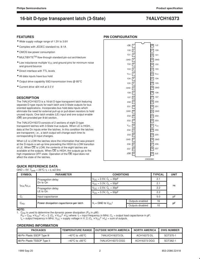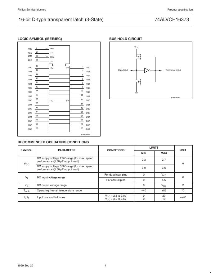 philips 74ALVCH16373 2.5V/3.3V 16-bit D-type transparent latch (3-State) 数据手册.pdf