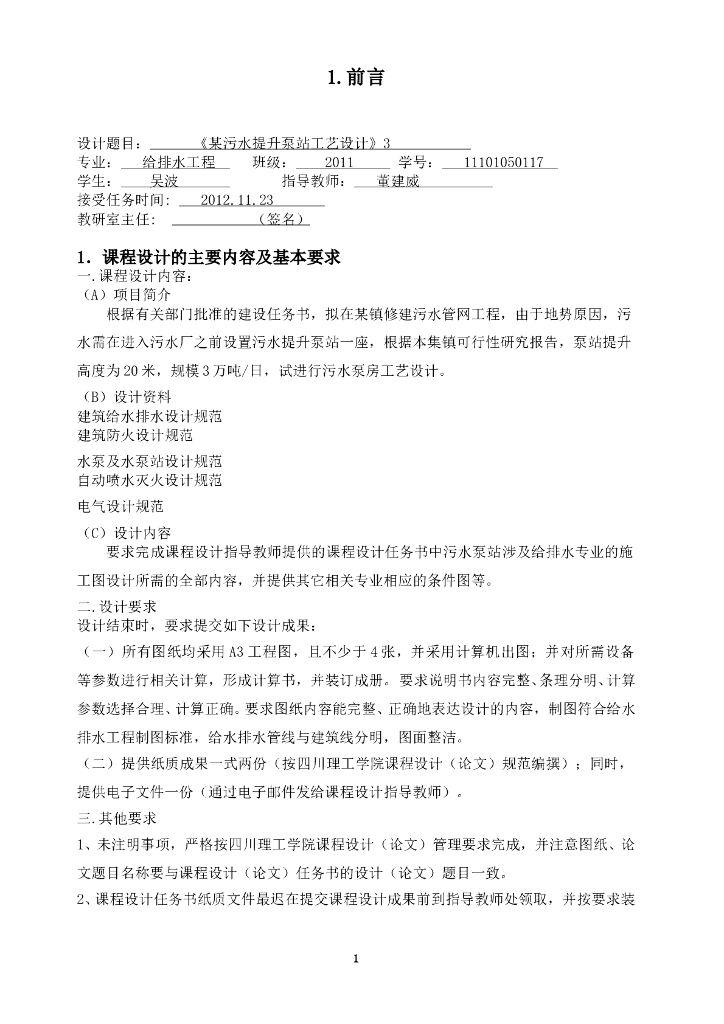 泵与泵站工艺设计(提升泵房).doc