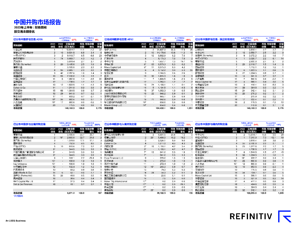 路孚特:2023年上半年中国并购市场报告及顾问榜单.pdf