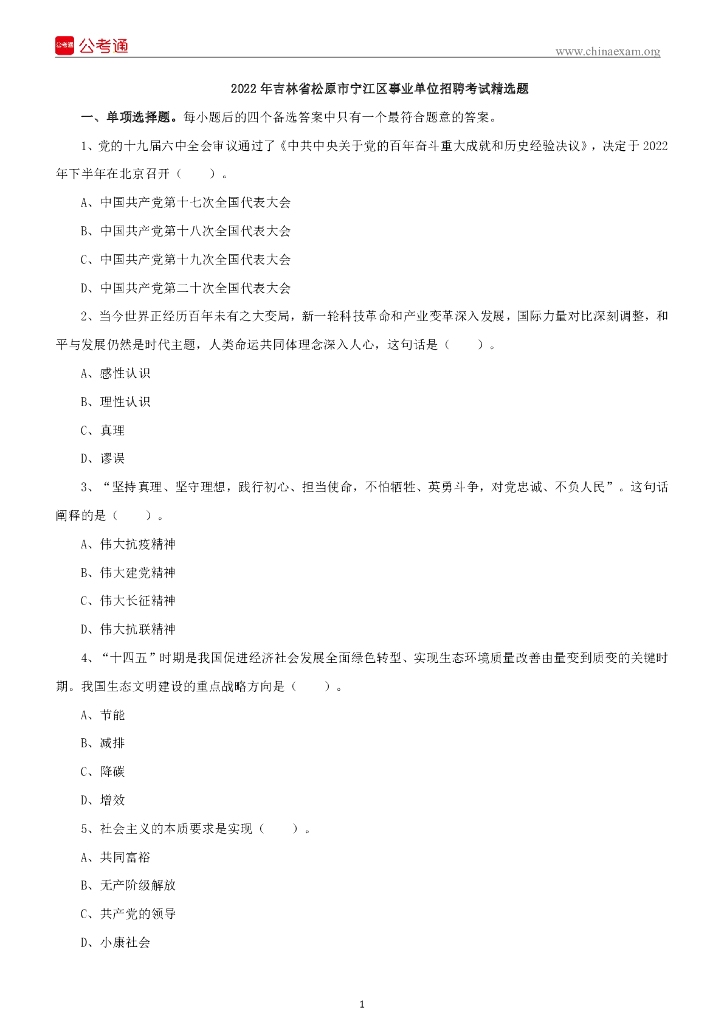 2022年吉林省松原市宁江区事业单位招聘考试精选题.pdf