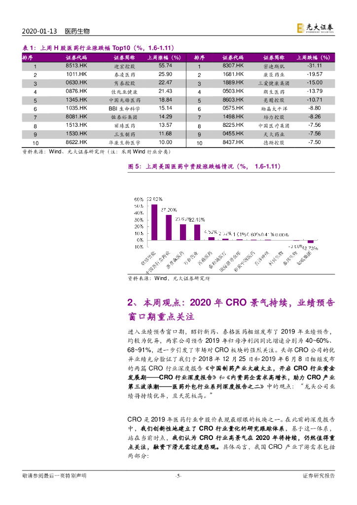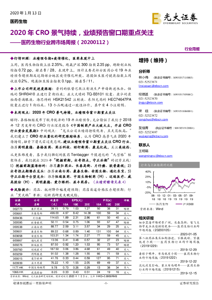 光大证券:医药生物行业跨市场周报:2020年CRO景气持续,业绩预告窗口期重点关注.pdf