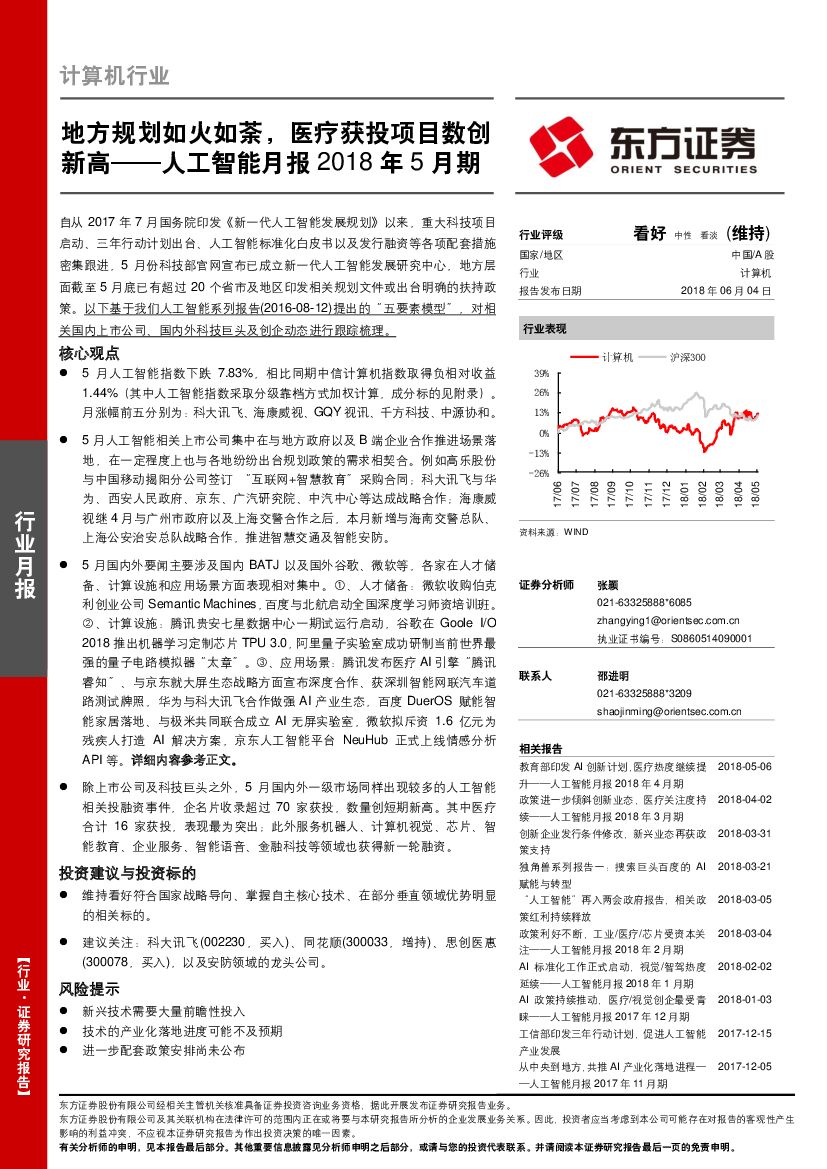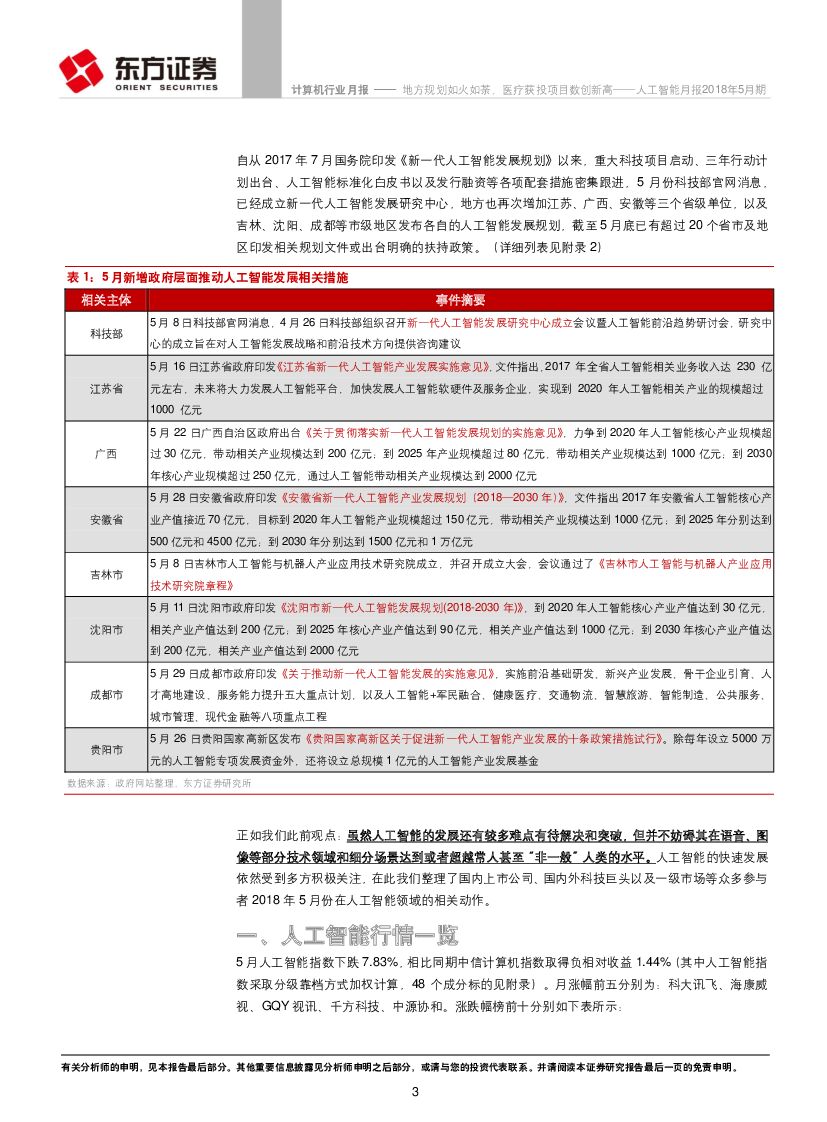 东方证券:人工智能月报2018年5月期:地方规划如火如荼,医疗获投项目数创新高.pdf