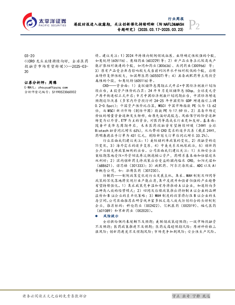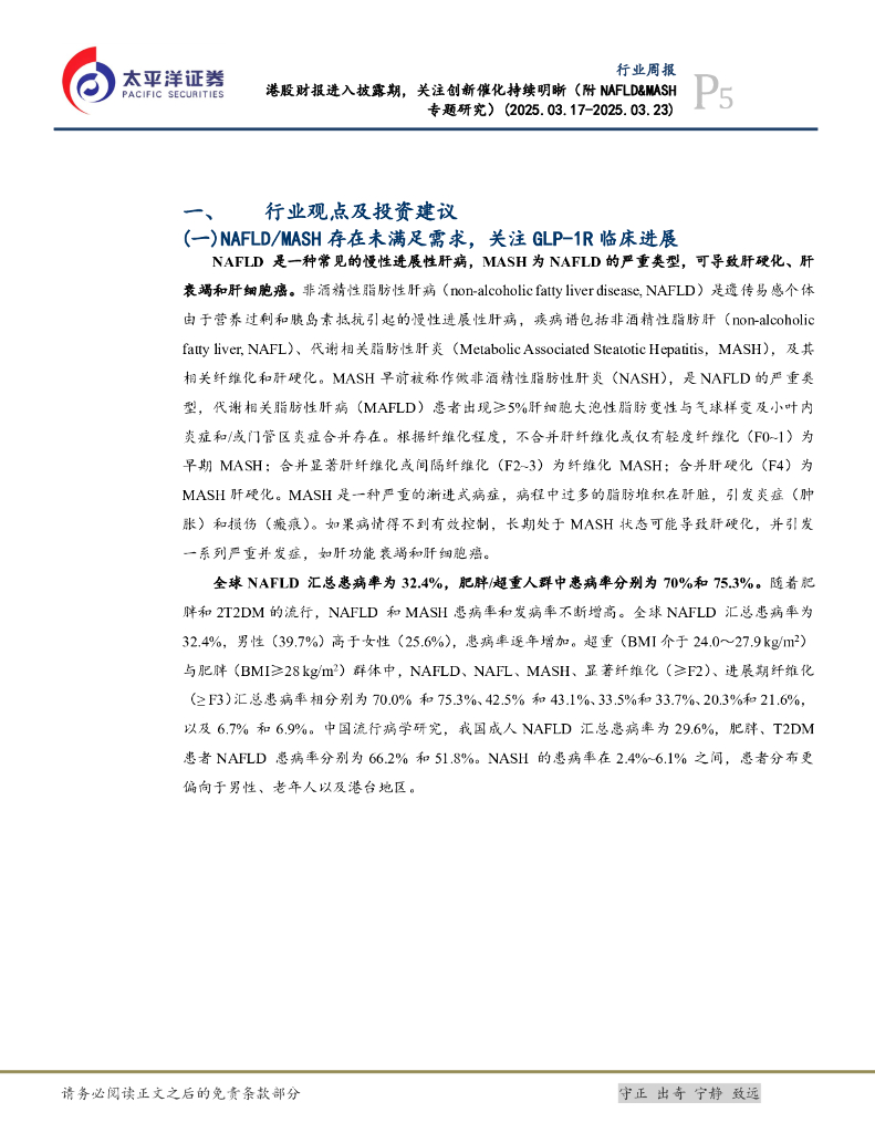 太平洋证券:医药行业周报:港股财报进入披露期,关注创新催化持续明晰(附NAFLD&MASH专题研究).pdf