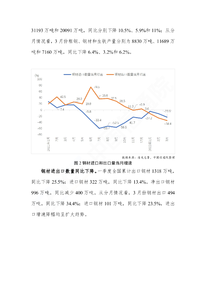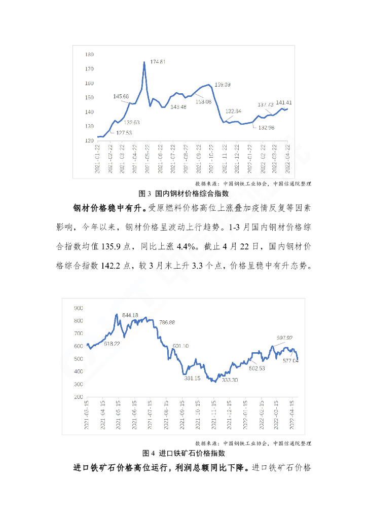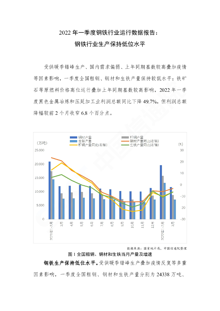 中国信通院:2022年一季度钢铁行业运行数据报告:钢铁行业生产保持低位水平.pdf