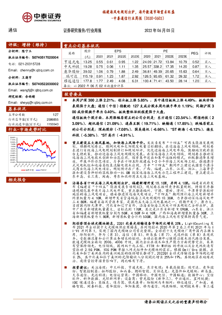 中泰证券:中泰通信行业周报:福建海风电规划出炉,海外数通市场需求旺盛.pdf