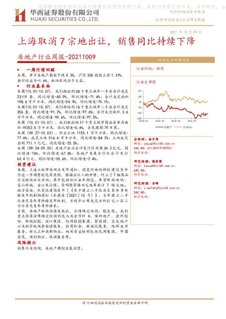 华西证券:房地产行业周报:上海取消7宗地出让,销售同比持续下降.pdf