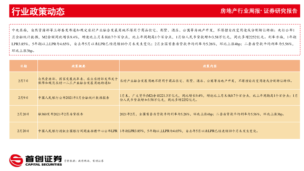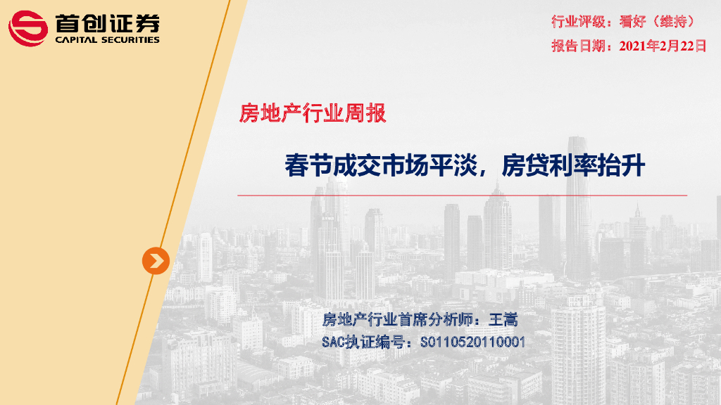首创证券:房地产行业周报:春节成交市场平淡,房贷利率抬升.pdf