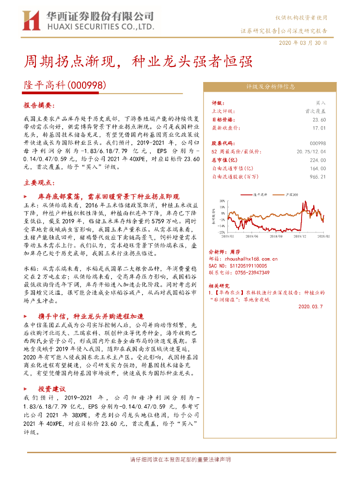 华西证券:隆平高科(000998)-周期拐点渐现,种业龙头强者恒强.pdf