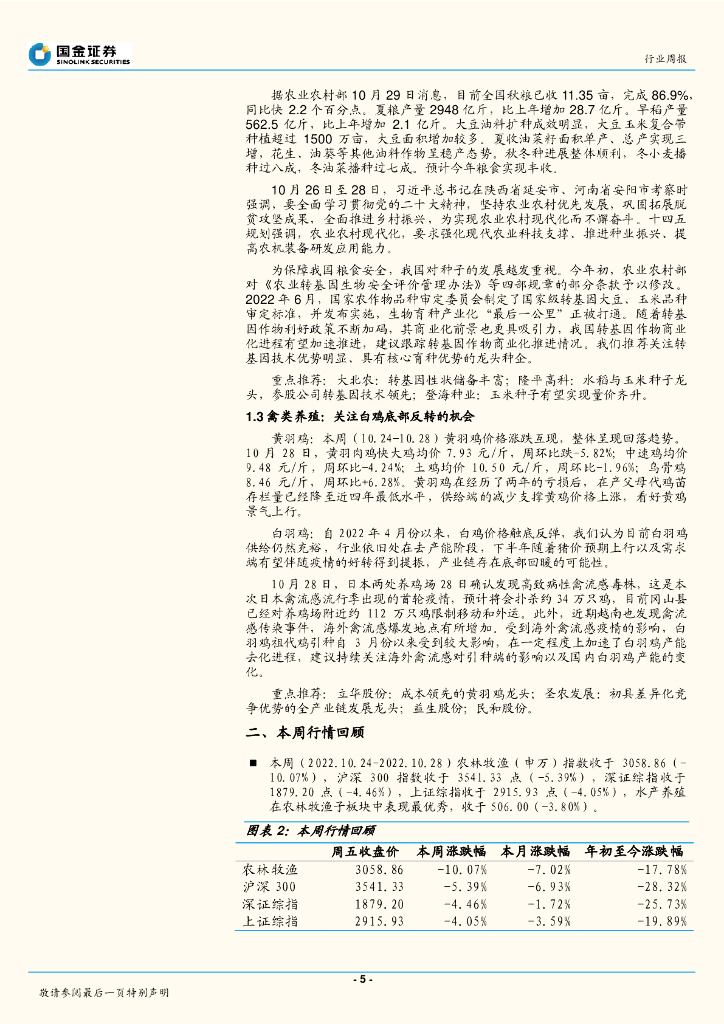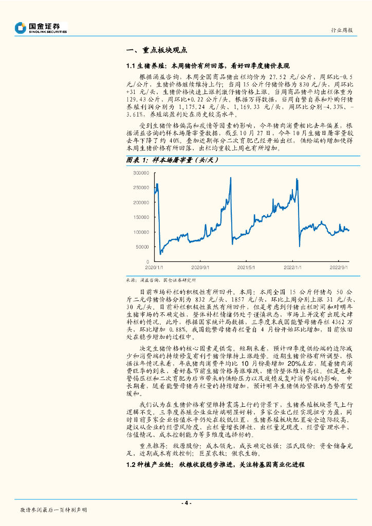 国金证券:农林牧渔行业研究:生猪价格震荡调整,秋粮收获稳步推进.pdf
