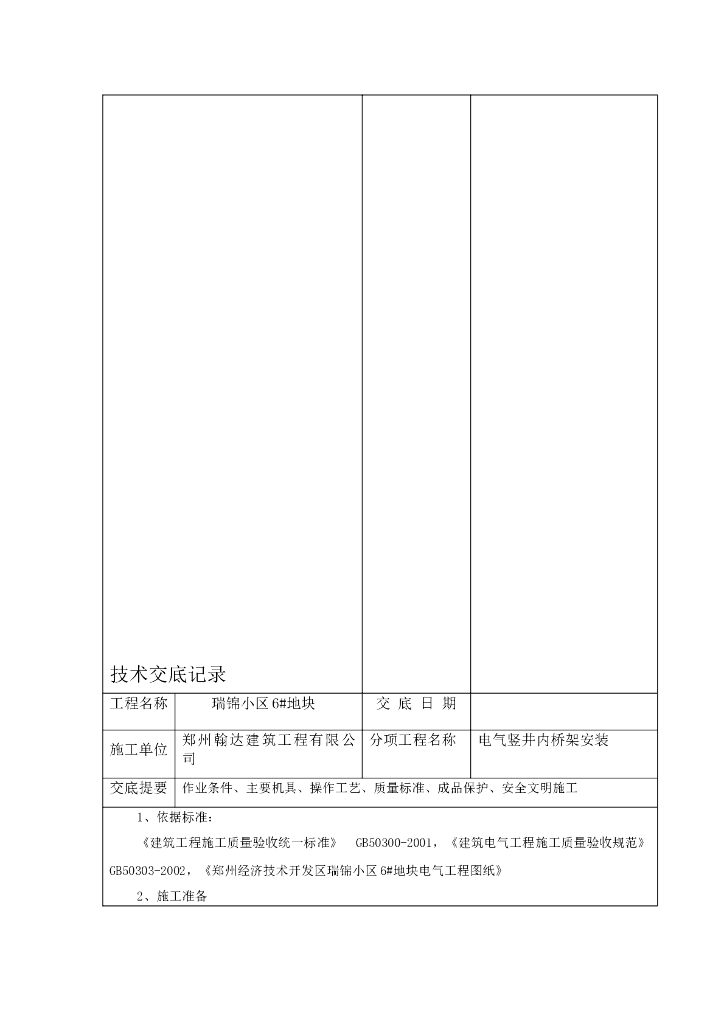 电气竖井内桥架安装技术交底记录.doc