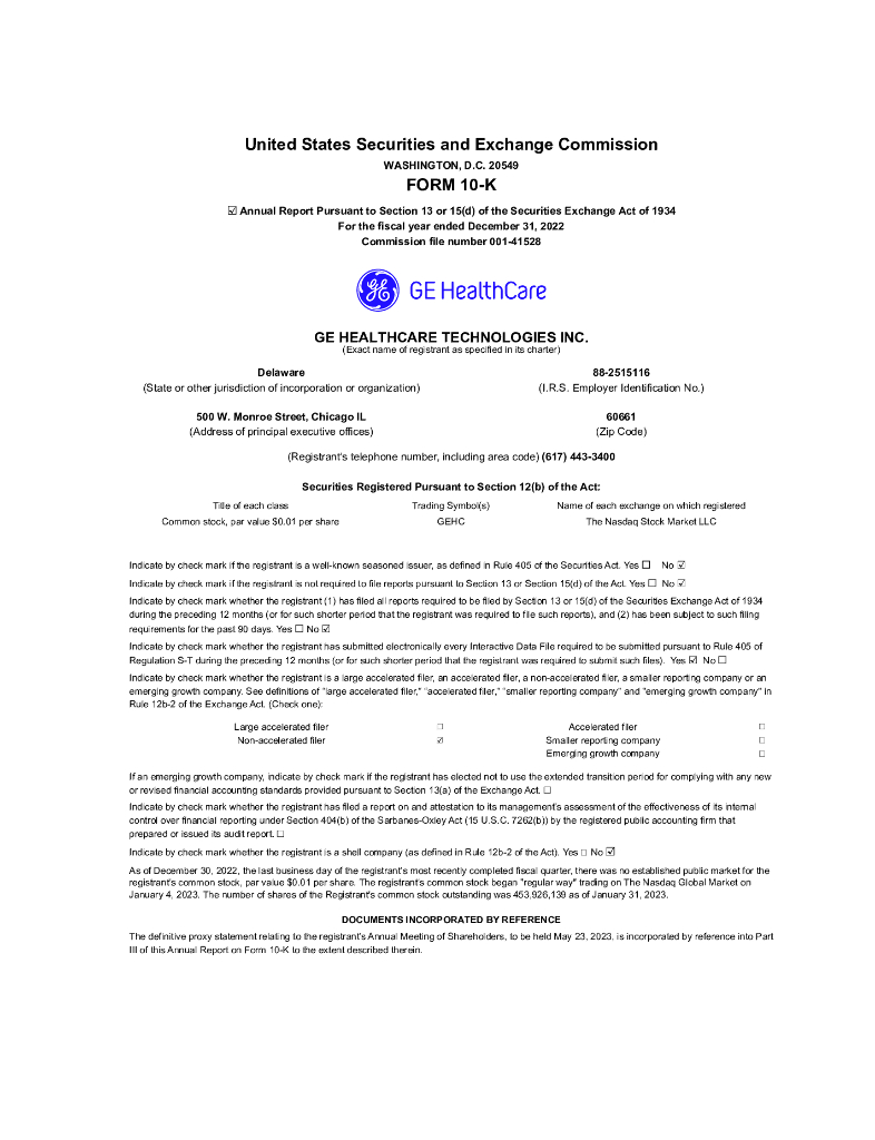 GE HealthCare Technologies Inc.(GEHC)2022财年年度报告(英文版).pdf