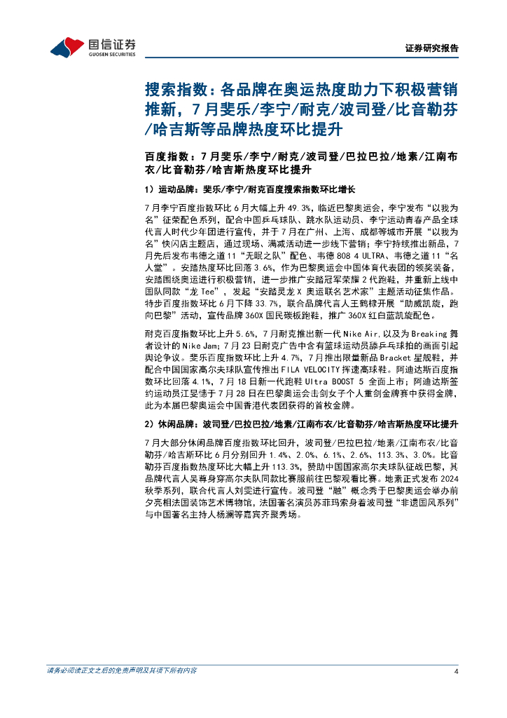 国信证券:纺织服装品牌力跟踪月报202407期:奥运助力各品牌营销推新,运动品牌搜索讨论热度提升.pdf
