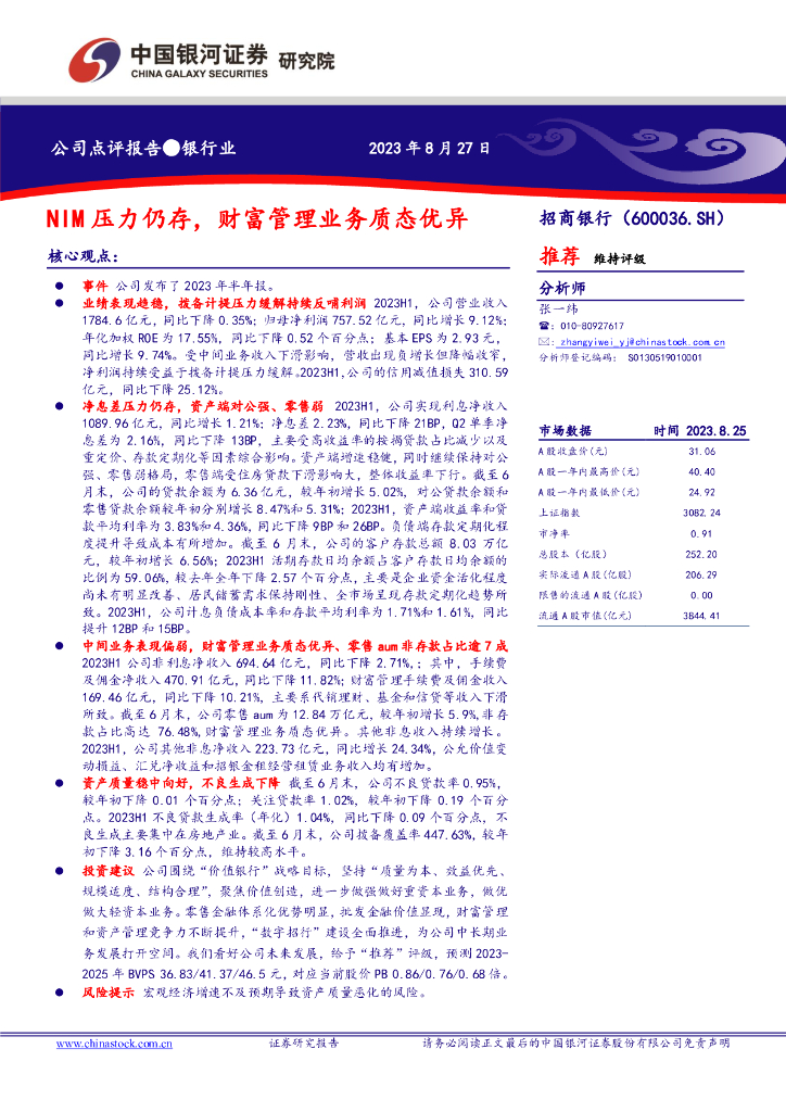 中国银河:招商银行(600036)-NIM压力仍存,财富管理业务质态优异.pdf