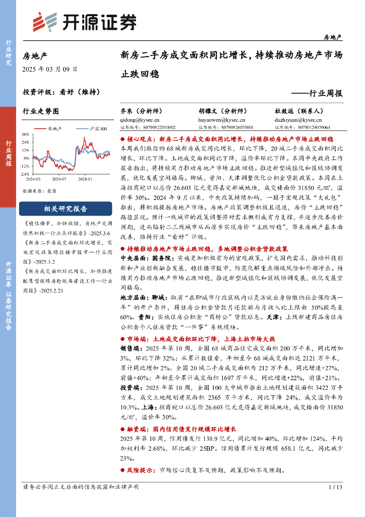 开源证券:房地产行业周报:新房二手房成交面积同比增长,持续推动房地产市场止跌回稳.pdf