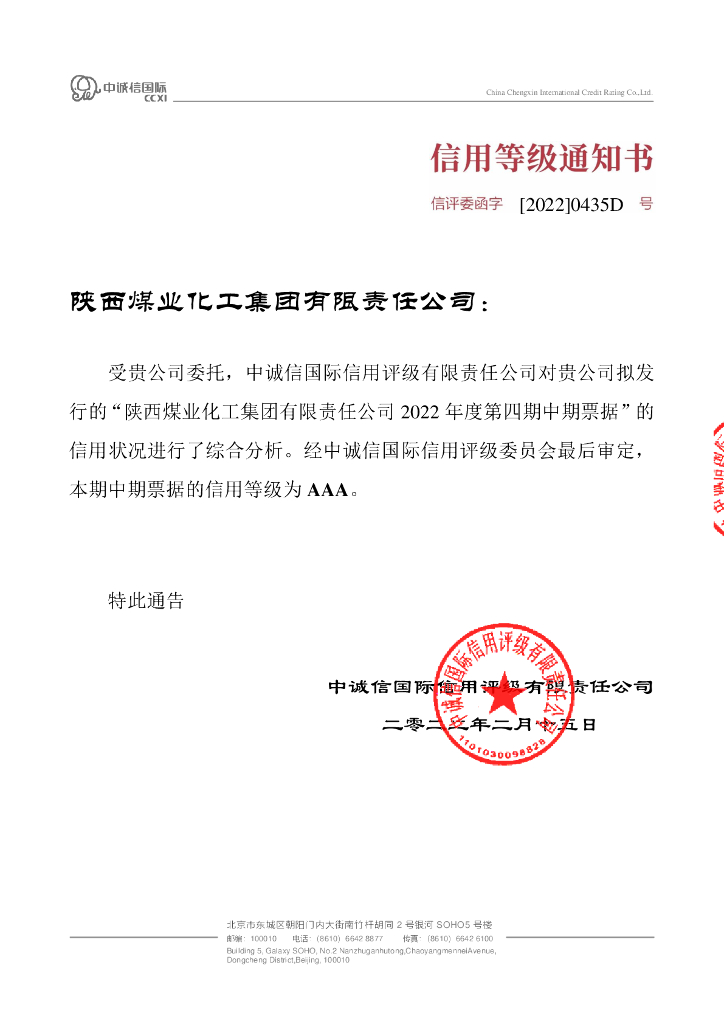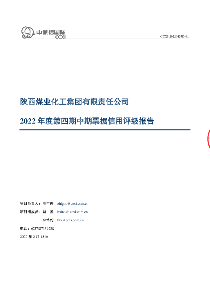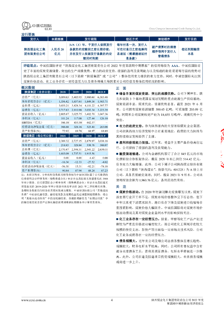 中诚信:陕西煤业化工集团有限责任公司2022年度第四期中期票据信用评级报告.pdf