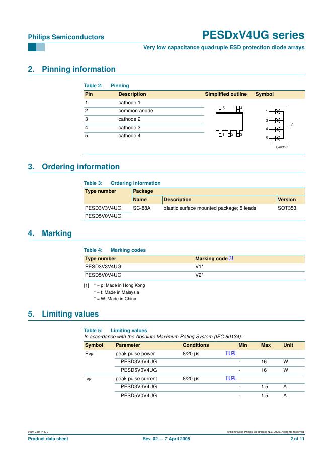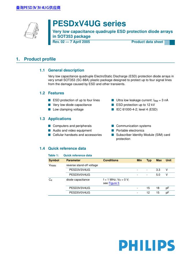 PHILIPS PESDxV4UG series Very low capacitance quadruple ESD protection diode arrays in SOT353 package 数据手册.pdf