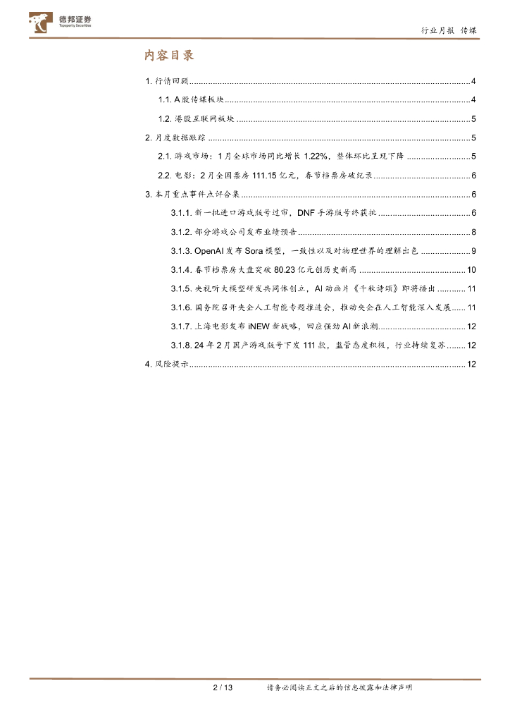 德邦证券:传媒互联网行业2月报:Sora横空出世加速技术迭代,关注AI多模态技术迭代与应用落地.pdf