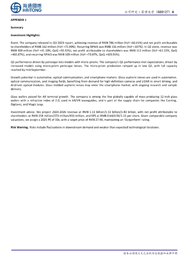 海通国际:蓝特光学(688127)-公司季报点评:Q3业绩符合预期,关注微棱镜下沉+玻非透镜消费级进展.pdf
