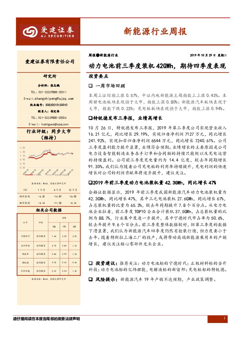 爱建证券:新能源行业周报:动力电池前三季度装机42GWh,期待四季度表现.pdf
