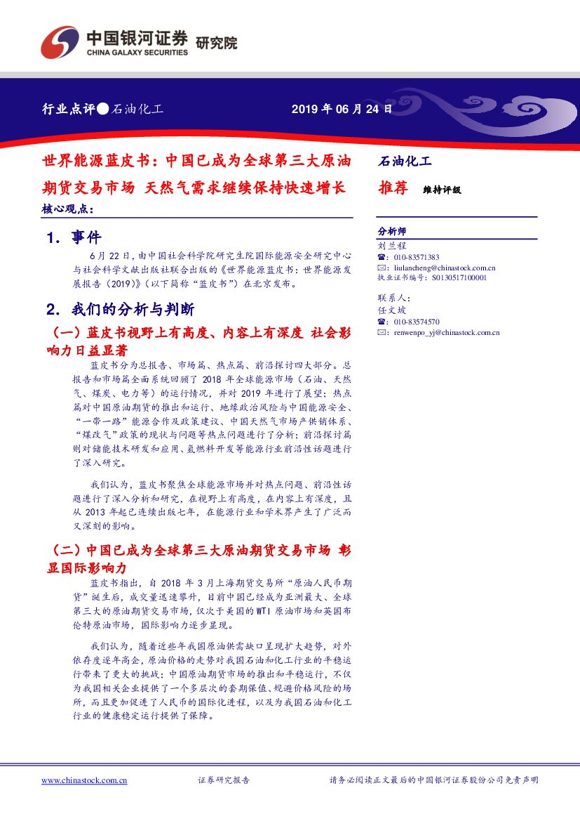 中国银河:石油化工行业点评:世界能源蓝皮书:中国已成为全球第三大原油期货交易市场 天然气需求继续保持快速增长.pdf