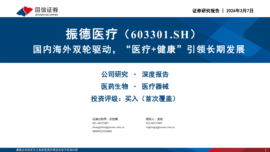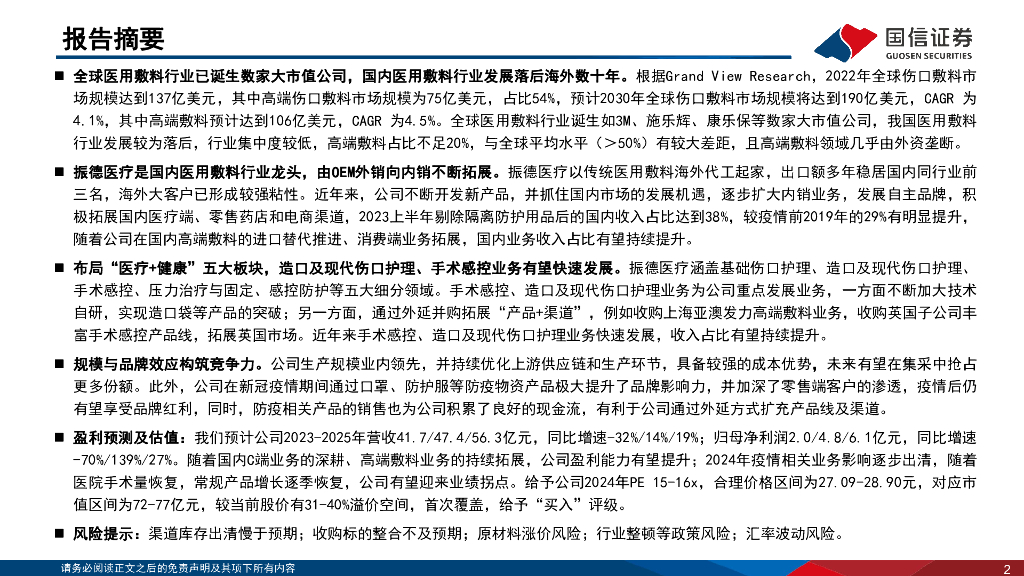 国信证券:振德医疗(603301)-国内海外双轮驱动,“医疗+健康”引领长期发展.pdf