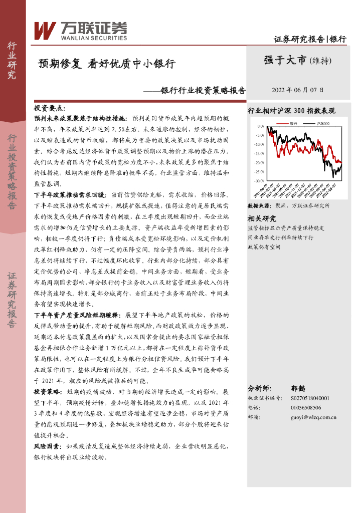 万联证券:银行行业投资策略报告:预期修复 看好优质中小银行.pdf