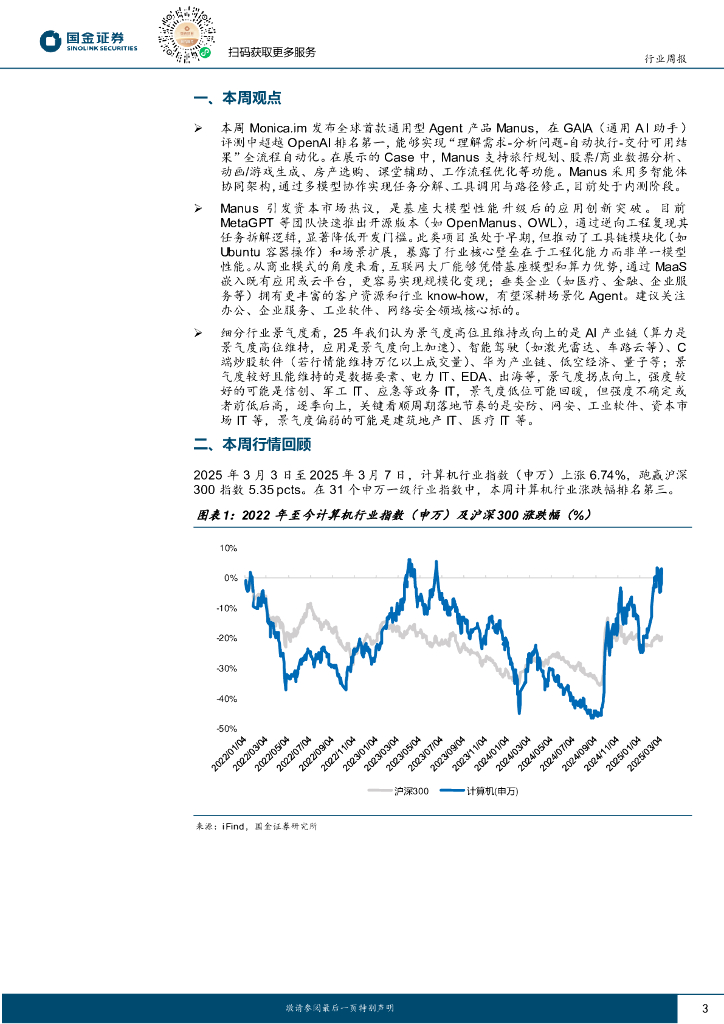 国金证券:计算机行业周报:Manus展现通用Agent潜力,AI应用有望持续创新.pdf