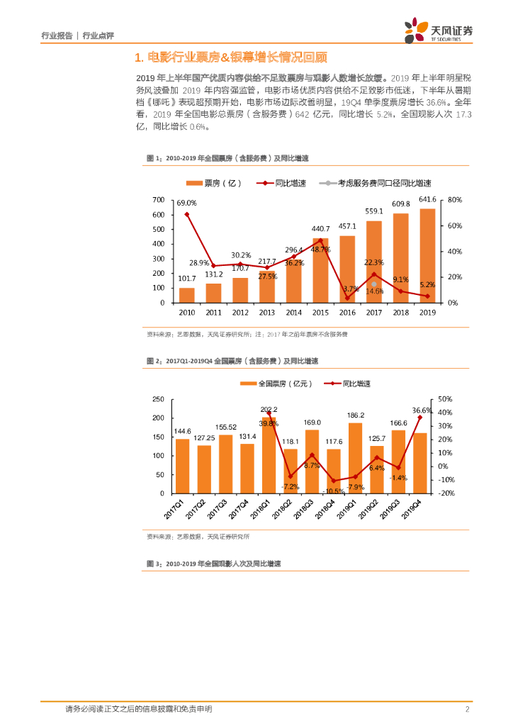 天风证券:文化传媒行业点评:电影行业19年&20Q1复盘及展望—影城复工在即,板块拐点可期.pdf