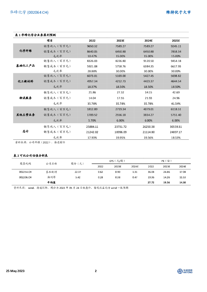 海通国际:华峰化学(002064)-2023Q1业绩回升,新增产能投放带动业绩增长.pdf