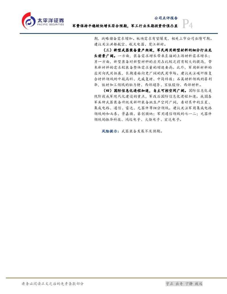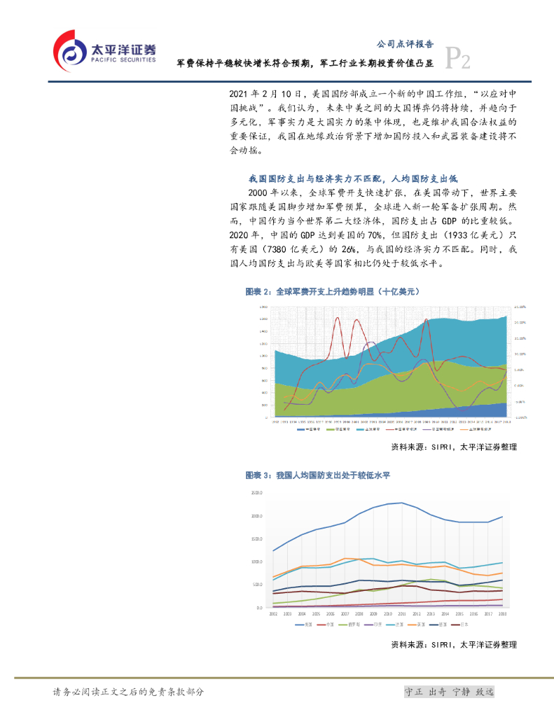 太平洋证券:国防军工行业点评报告:军费保持平稳较快增长符合预期,军工行业长期投资价值凸显.pdf