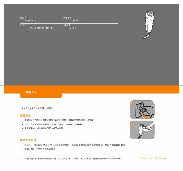 SAMPO ED-L11104WL吹风机 使用说明书.pdf