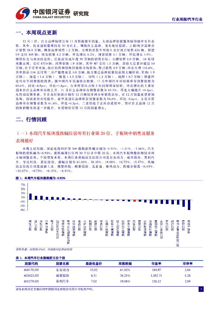 中国银河:汽车行业行业周报:自品牌公布11月新能源销量成绩单,终端12月销量预期大幅改善.pdf