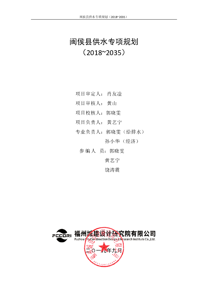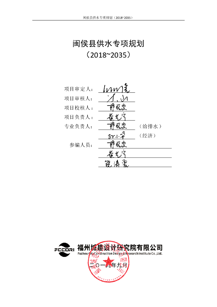 闽侯县供水专项规划(2018~2035)第一分册 技术文件(报批稿).pdf