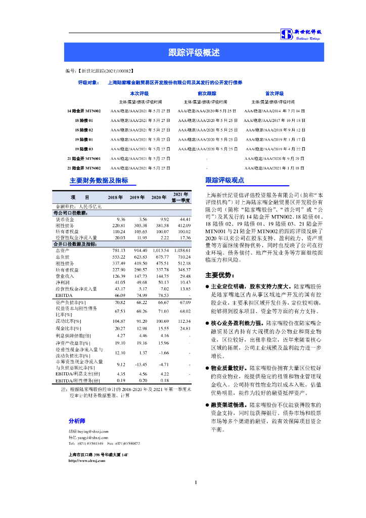 新世纪:上海陆家嘴金融贸易区开发股份有限公司及其发行的公开发行债券跟踪评级报告.pdf