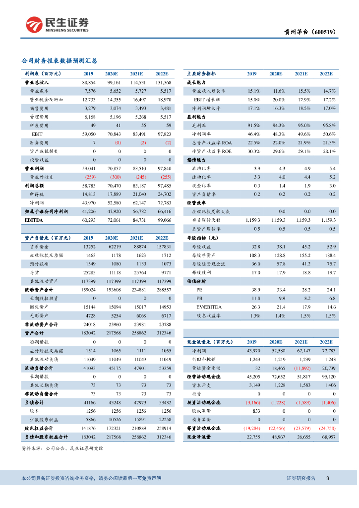 民生证券:贵州茅台(600519)-2020年一季报点评:20Q1业绩稳健增长,全年业绩确定性仍冠绝行业.pdf