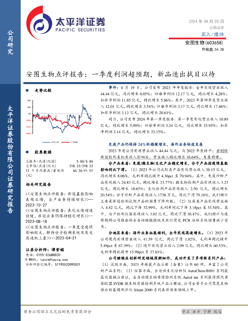 太平洋证券:安图生物点评报告:一季度利润超预期,新品迭出拭目以待.pdf