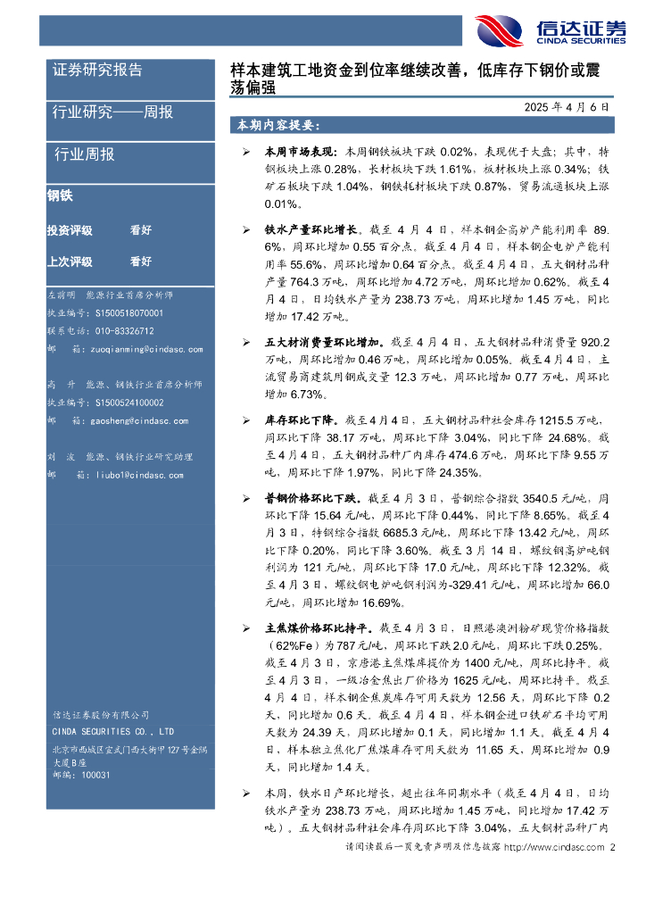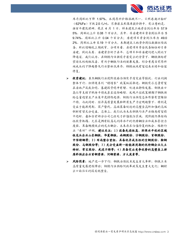 信达证券:样本建筑工地资金到位率继续改善,低库存下钢价或震荡偏强钢铁.pdf