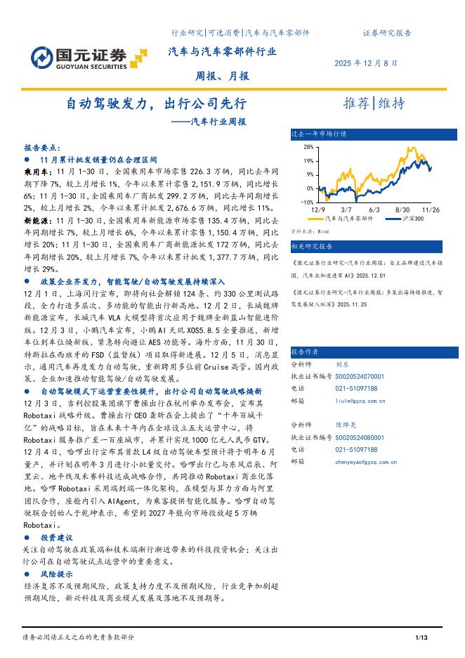国元证券:汽车行业周报:自动驾驶发力,出行公司先行.pdf