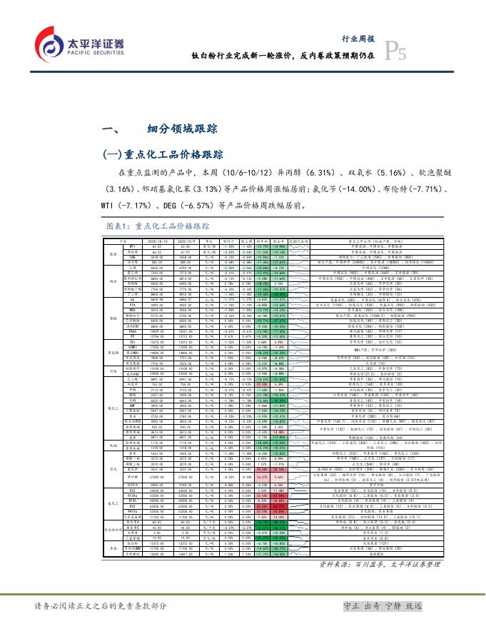 太平洋证券:化工行业周报:钛白粉行业完成新一轮涨价,反内卷政策预期仍在.pdf