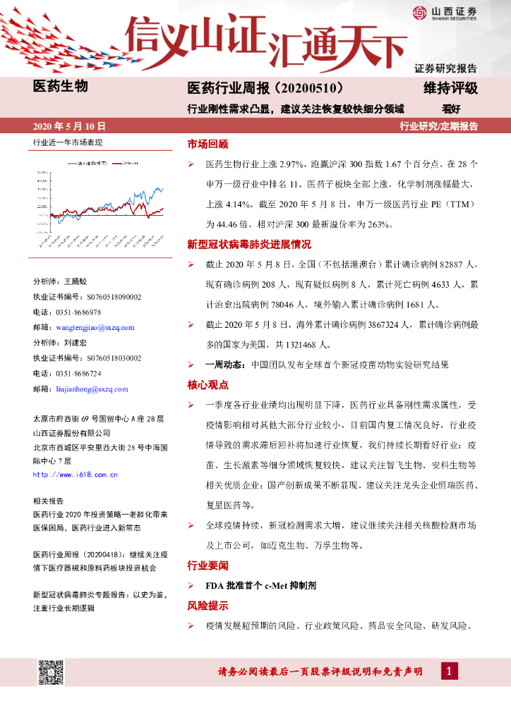 山西证券:医药行业周报:行业刚性需求凸显,建议关注恢复较快细分领域.pdf