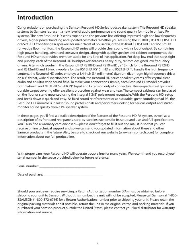 SAMSON RS10HD RS12HD RS15HD RS215HD RS10mHD RS12mHD RS15mHD 用户手册.pdf