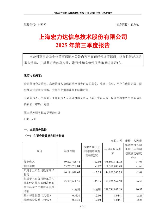 688330-宏力达:宏力达2025年第三季度报告.pdf