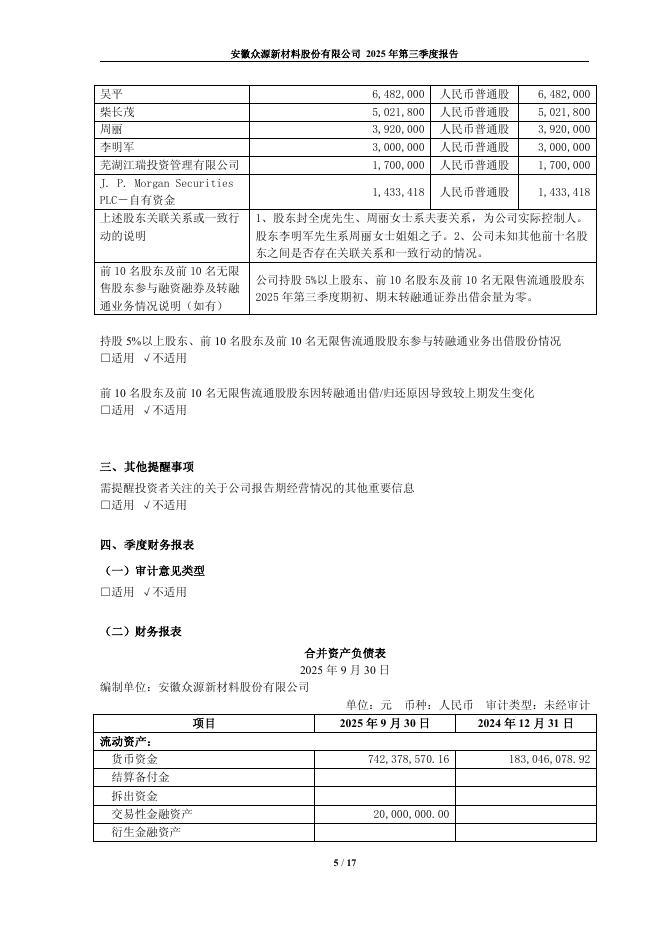 603527-众源新材:众源新材2025年第三季度报告.pdf